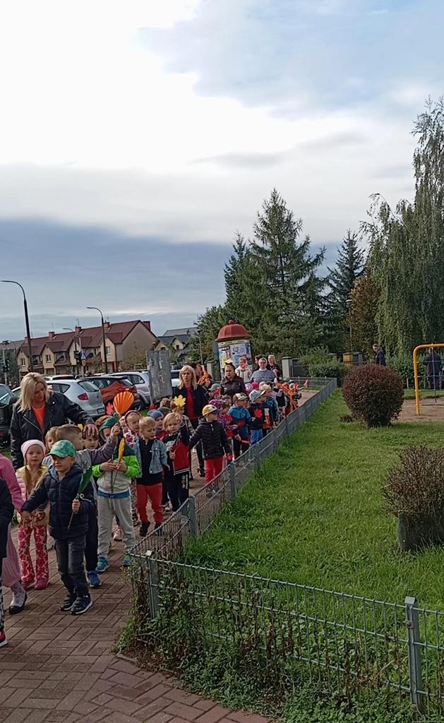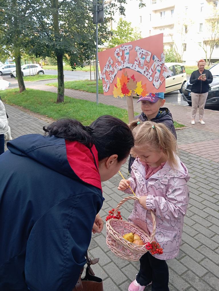 Pierwszy dzień jesieni był dla naszych przedszkolaków wyjątkowy! Dzieci wyruszyły w barwnym pochodzie, aby radośnie przywitać nową porę roku. Radośnie machały kolorowymi listkami i bibułkami, a przechodniom rozdawały owoce-dary jesieni. Całości dopełniała wspólnie zaśpiewana jesienna piosenka, która wprowadziła wszystkich w piękny, jesienny nastrój. Było kolorowo, radośnie i bardzo uroczyście – dokładnie tak, jak powitanie jesieni powinno wyglądać!
