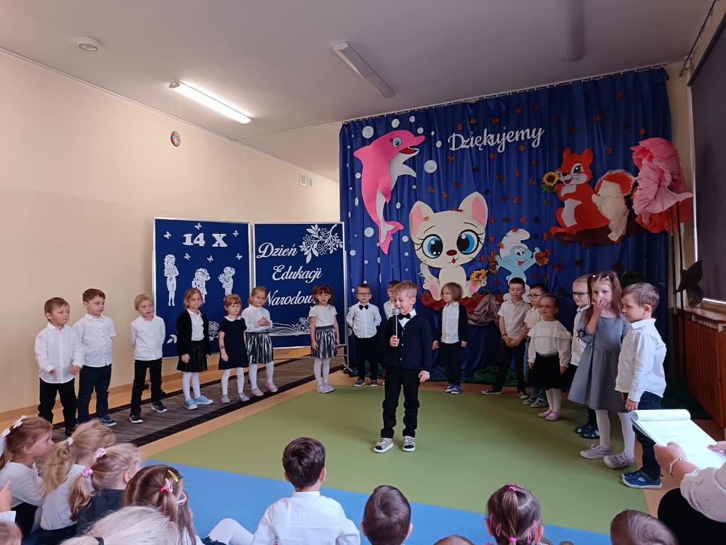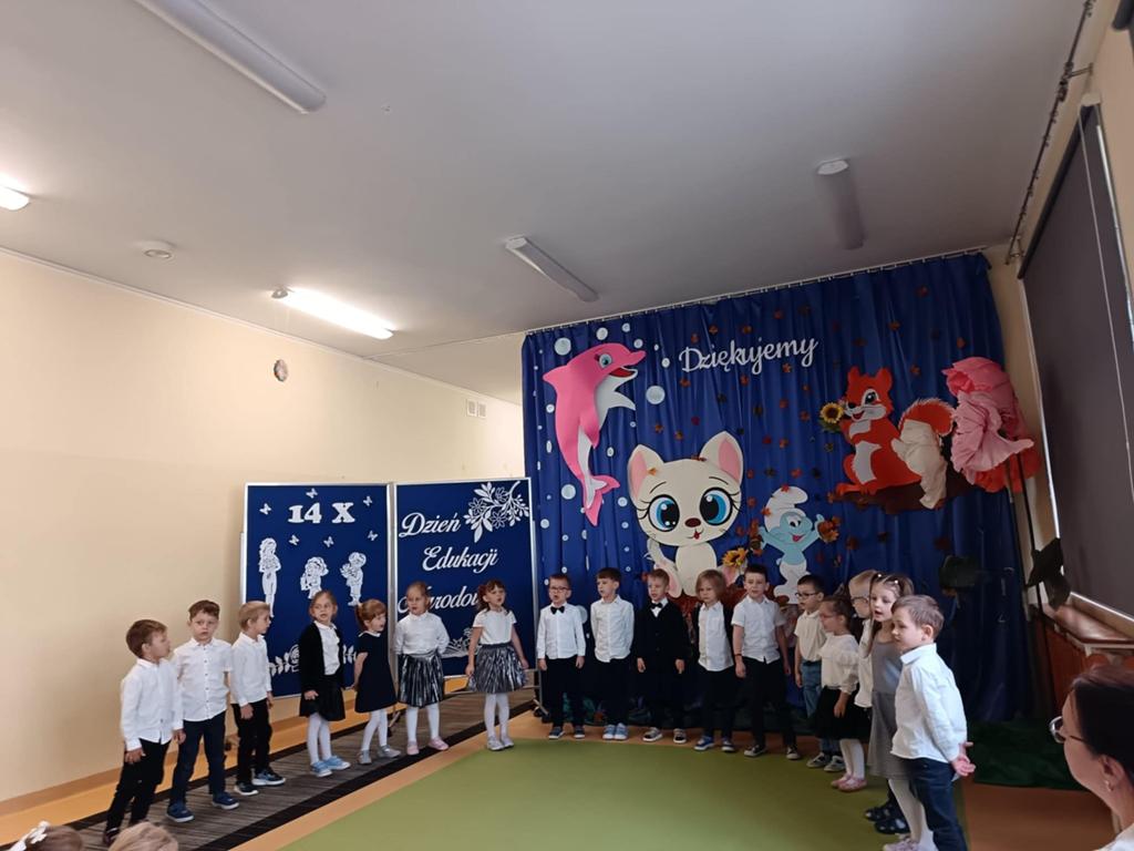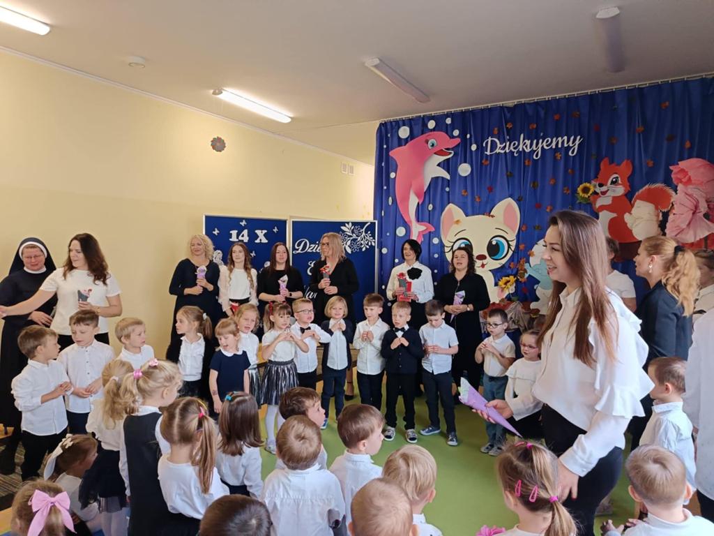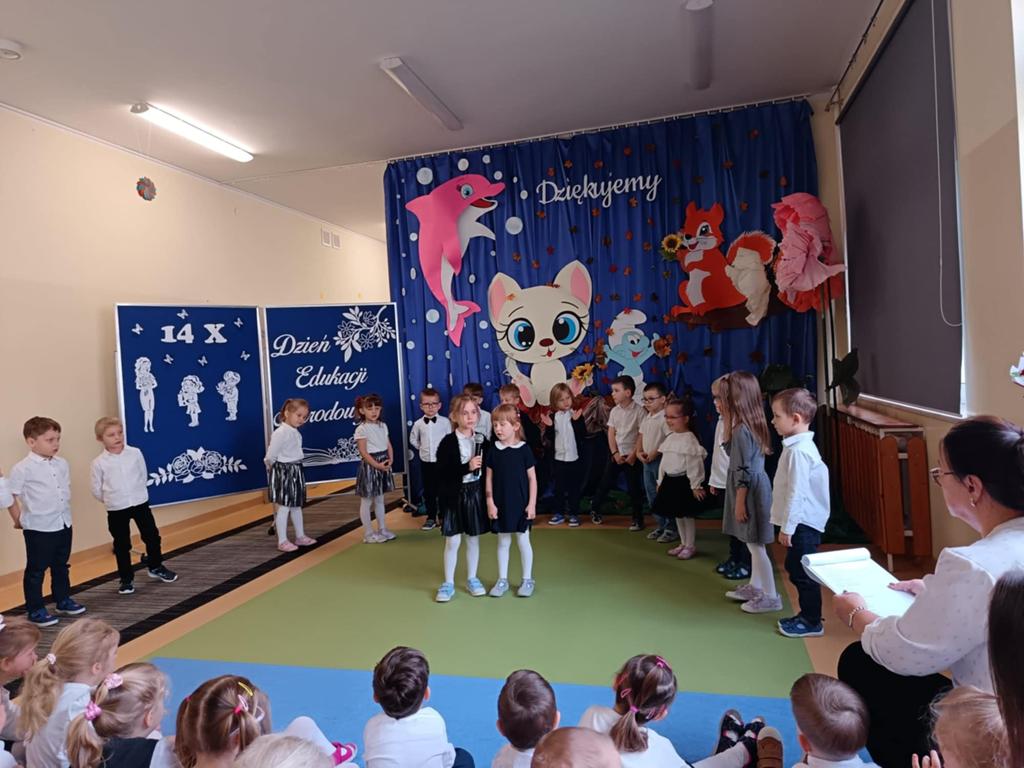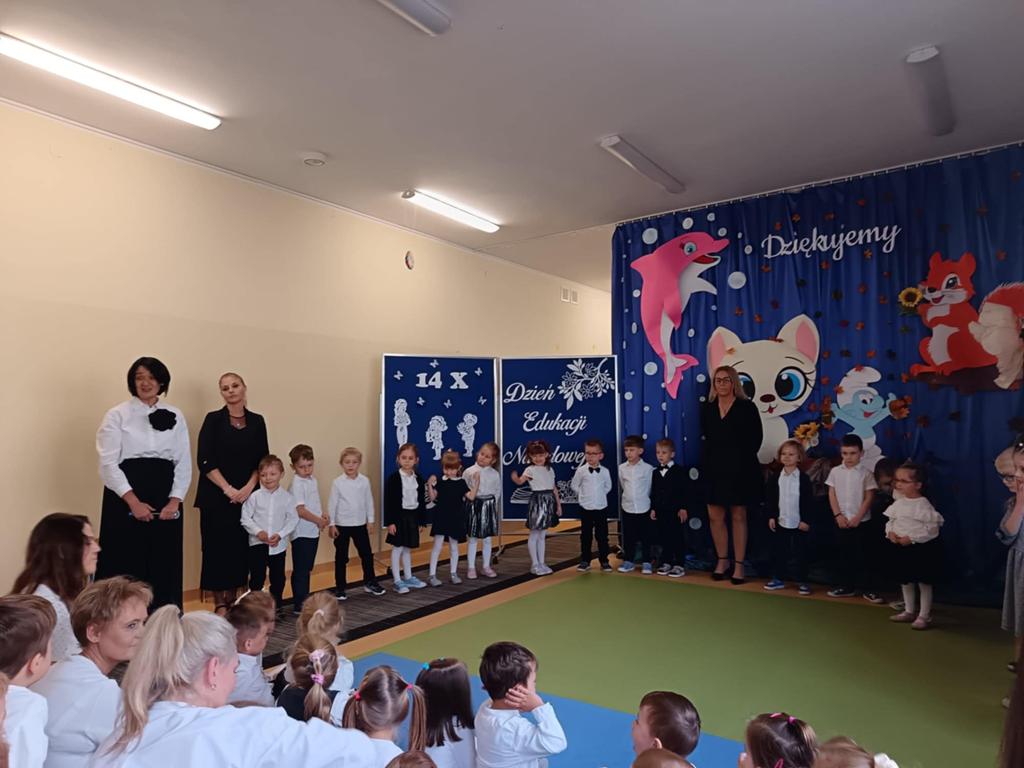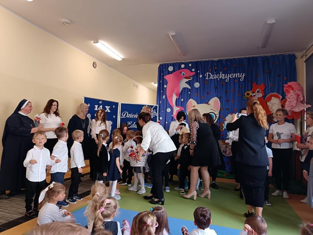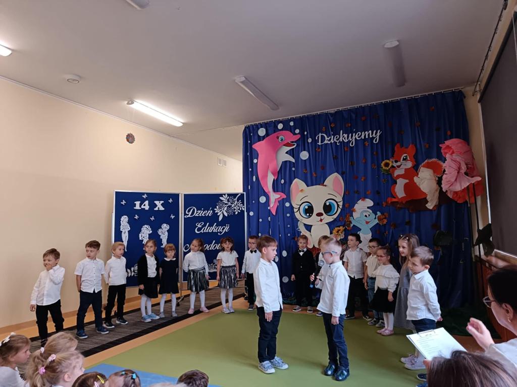 15 października w naszym przedszkolu odbyło się uroczyste przedstawienie przygotowane przez dzieci z grup 5-latków „Smerfy” i „Kotki”. Z okazji Dnia Edukacji Narodowej przedszkolaki zaprezentowały piękny program artystyczny – śpiewały piosenki i recytowały wiersze. Pani Dyrektor Grażyna Leydy pogratulowała małym artystom wspaniałego występu oraz złożyła życzenia wszystkim nauczycielom i pracownikom z okazji ich święta.
