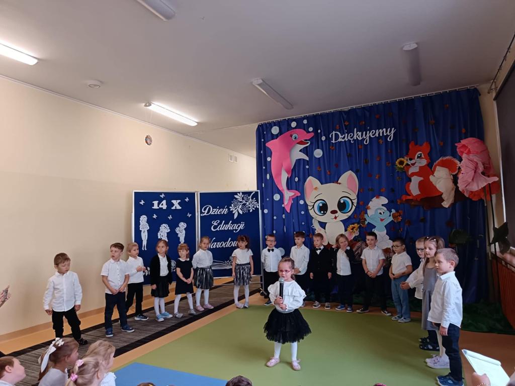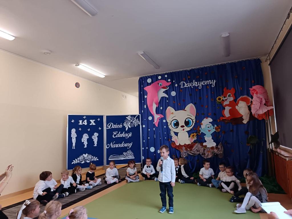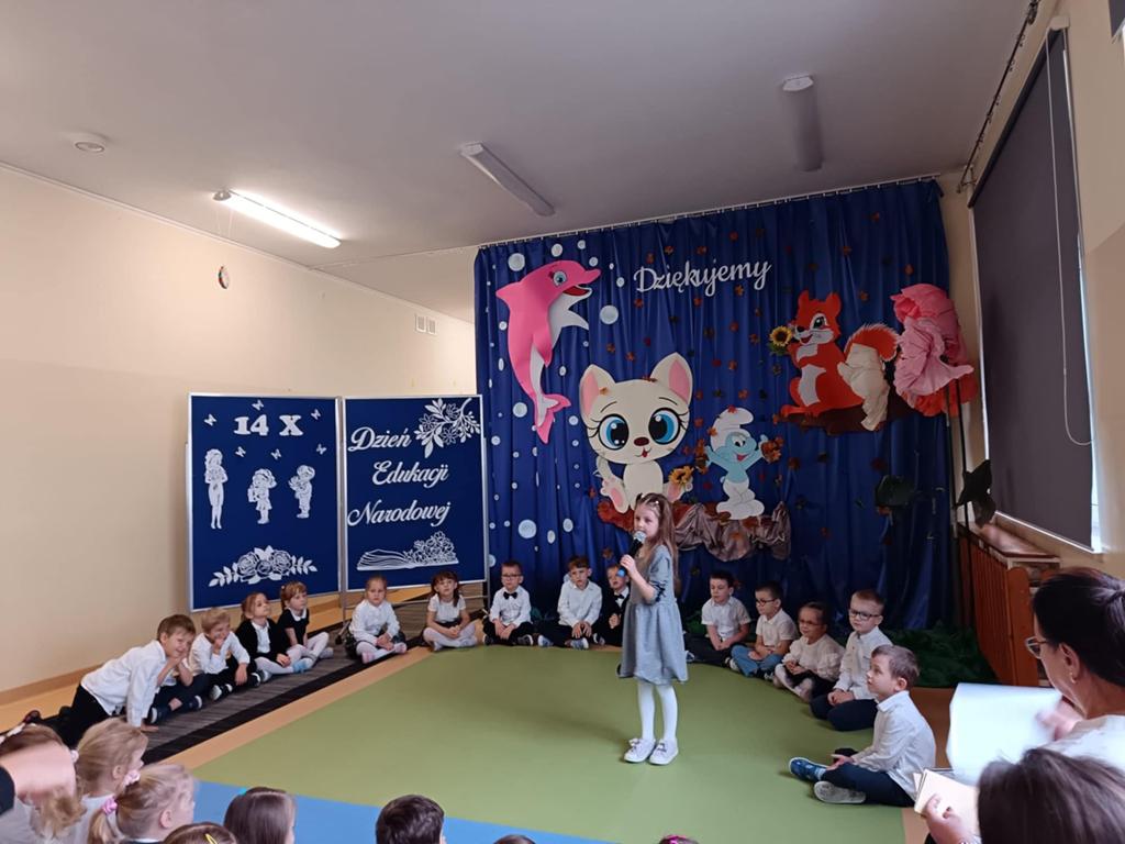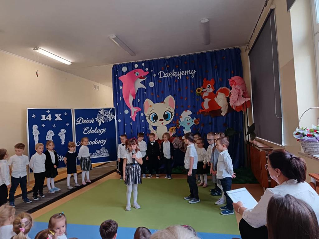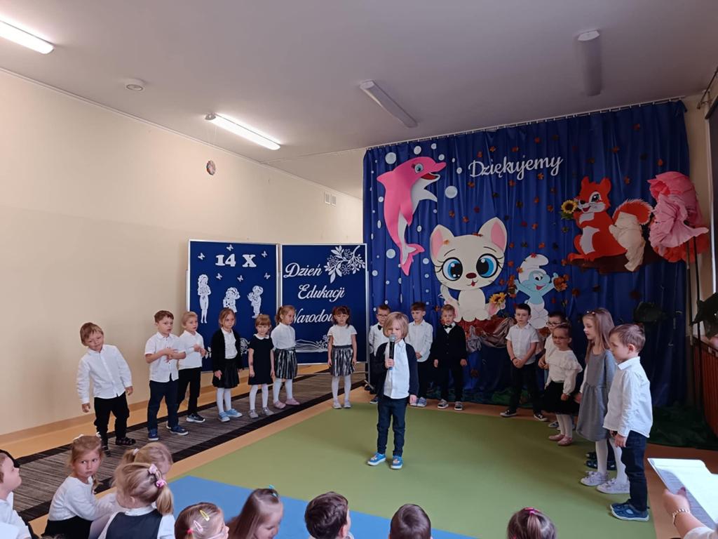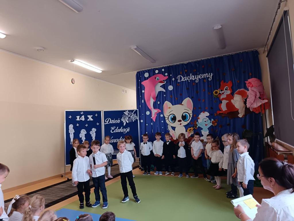 15 października w naszym przedszkolu odbyło się uroczyste przedstawienie przygotowane przez dzieci z grup 5-latków „Smerfy” i „Kotki”. Z okazji Dnia Edukacji Narodowej przedszkolaki zaprezentowały piękny program artystyczny – śpiewały piosenki i recytowały wiersze. Pani Dyrektor Grażyna Leydy pogratulowała małym artystom wspaniałego występu oraz złożyła życzenia wszystkim nauczycielom i pracownikom z okazji ich święta.
