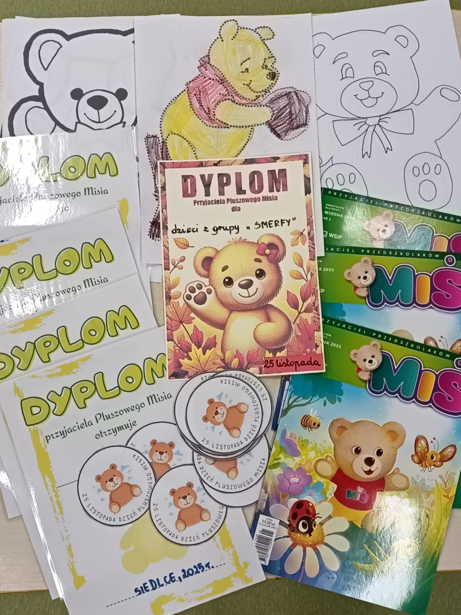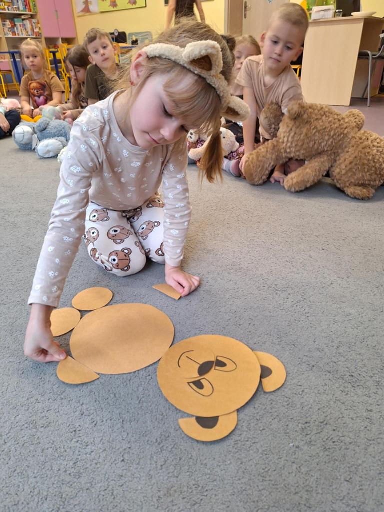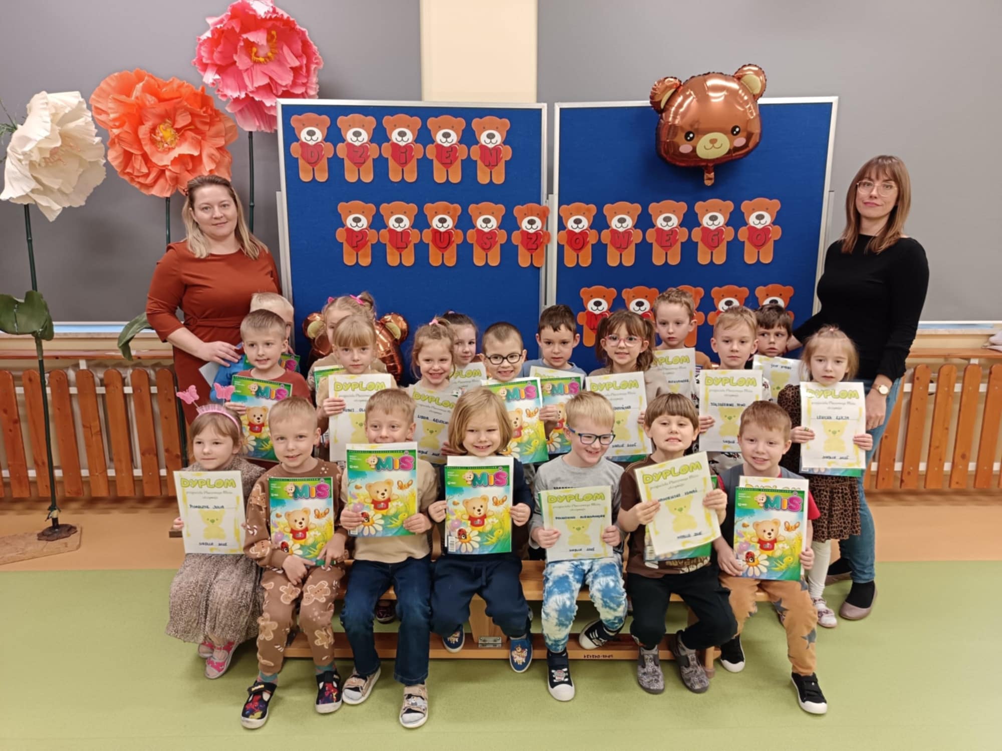 Przedszkolaki brały udział w misiowych tańcach, zabawach i konkurencjach, słuchały opowieści o historii pluszowego misia oraz wykonały piękne prace plastyczne. Atmosfera przez cały dzień była ciepła, radosna i pełna pozytywnych emocji.