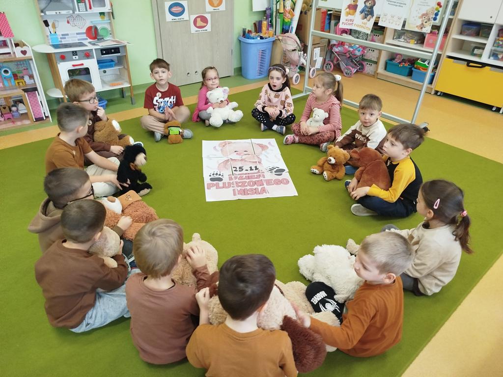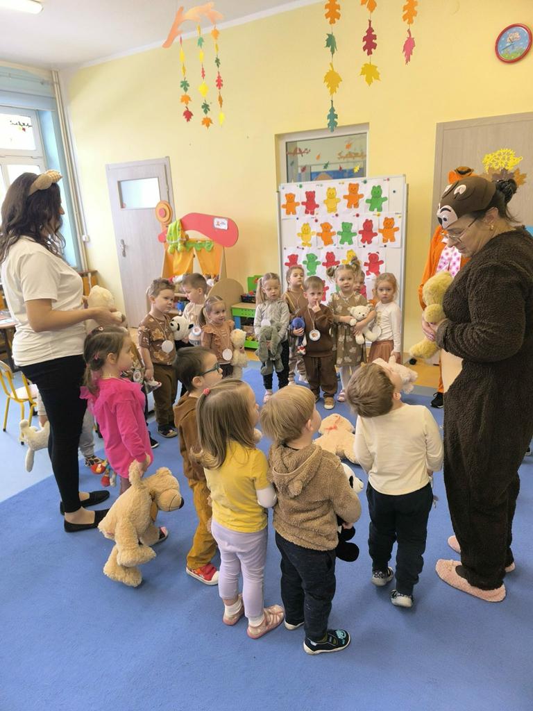 Dzieci przyniosły swoje ukochane pluszaki, a dodatkową niespodzianką było to, że każdą grupę odwiedzili specjalni „misiowi goście”, którzy wprowadzili jeszcze więcej uśmiechu i zabawy.