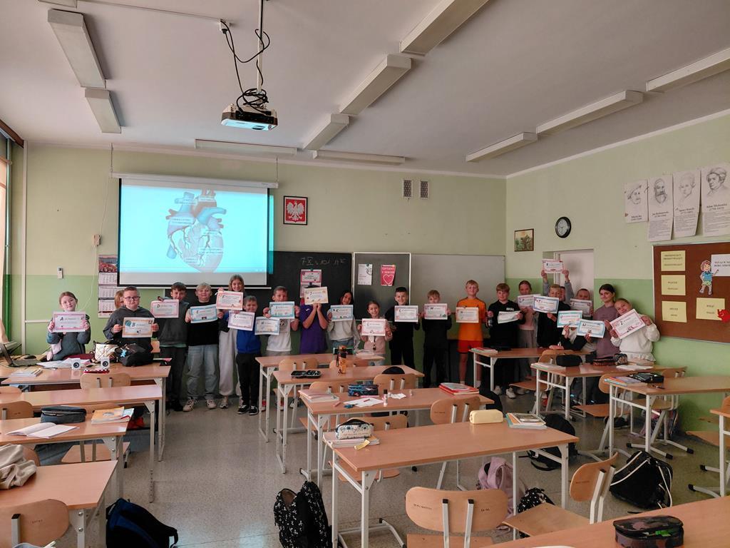 Na lekcjach języka polskiego uczniowie klasy 5c oraz klasy 5d poznali związki frazeologiczne związane z sercem oraz alfabet zdrowego serca, który w prosty sposób wyjaśnił im zasady zdrowego stylu życia. Ponadto uczniowie przeczytali fragment książki „Pracownia Aurory”, jak również zaangażowali się w szereg kreatywnych działań:
