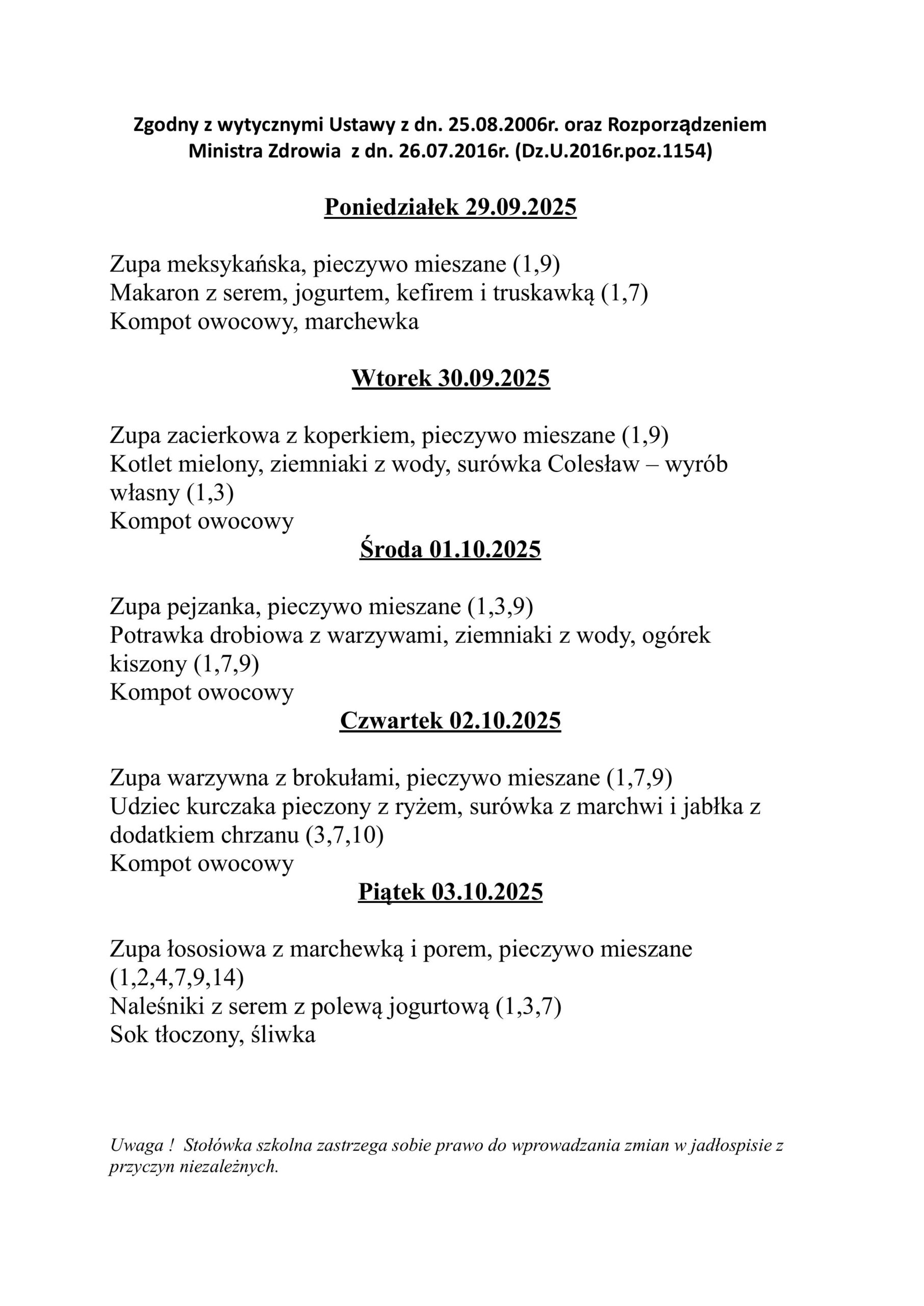 od 23 września do 29 września 2025 (obiady od 1 października)