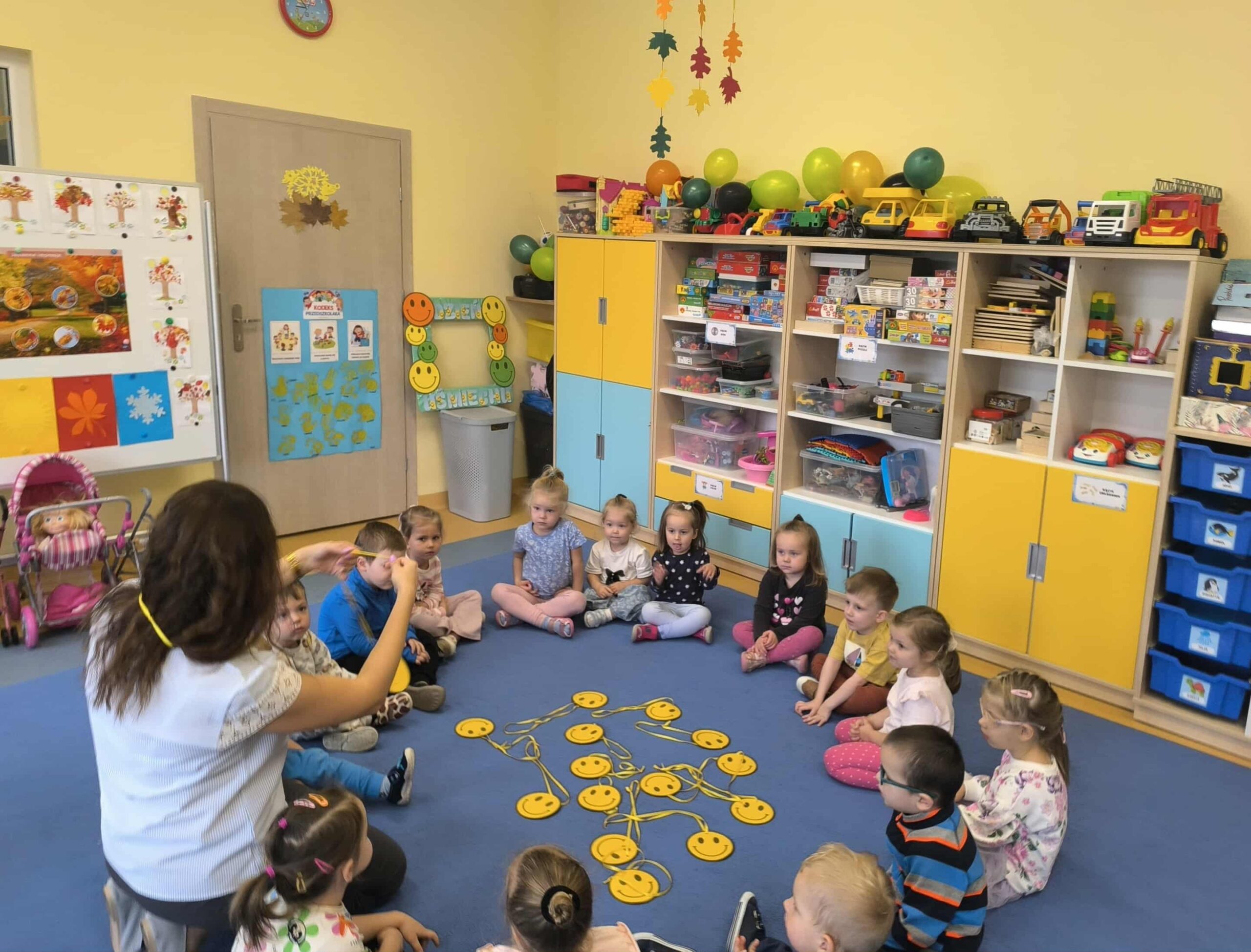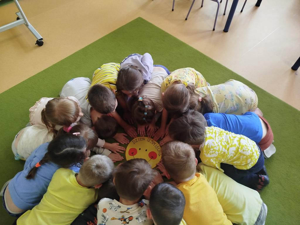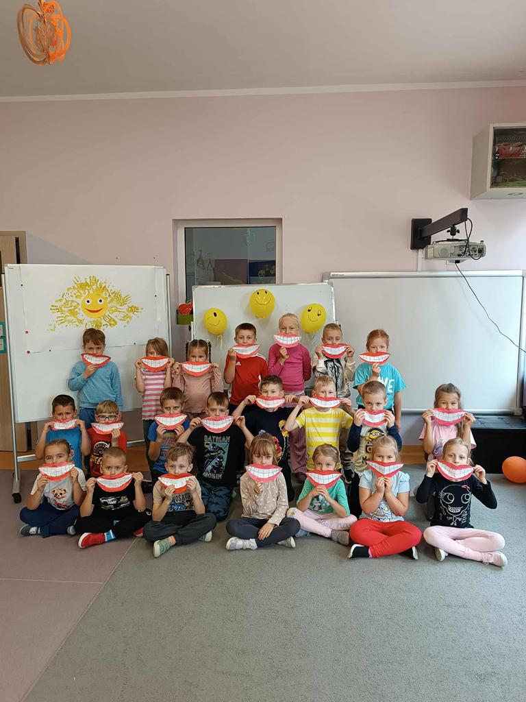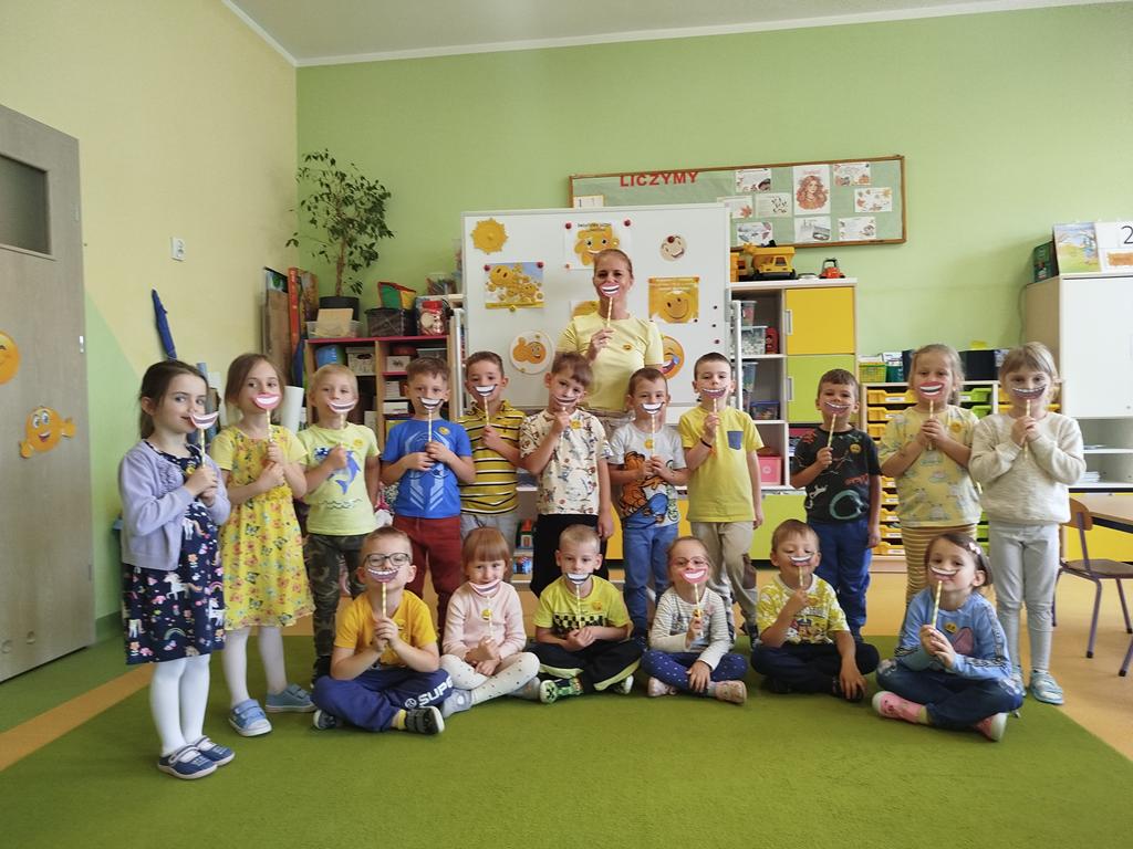 W piątek, 3 października w naszym oddziale przedszkolnym obchodziliśmy wyjątkowe święto – Dzień Uśmiechu. Już od rana na twarzach dzieci gościła radość. Przedszkolaki brały udział w zabawach ruchowych i integracyjnych, rozwiązywały zagadki związane z emocjami oraz tworzyły „Uśmiechnięte portrety”. Nie zabrakło również wspólnych tańców i piosenek, które jeszcze bardziej podkreśliły radosny charakter dnia.