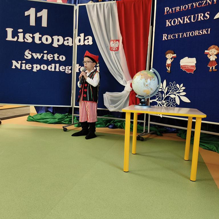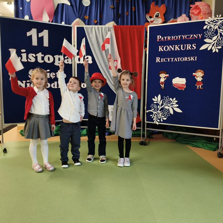 W listopadzie w naszym przedszkolu odbył się konkurs recytatorski pod tytułem „Mali Patrioci”, którego celem było kształtowanie postaw patriotycznych oraz rozwijanie wrażliwości artystycznej dzieci. Do konkursu przystąpiło 17 uczestników, którzy z ogromnym zaangażowaniem prezentowali wiersze o Polsce, symbolach narodowych i miłości do ojczyzny. Jury w składzie: Pani Katarzyna Madej-Szczęśniak, Pani Anna Królikowska i Pani Agata Zdankowska miało niełatwe zadanie, ponieważ wszystkie występy były wyjątkowe. Po uważnej ocenie prezentacji wyłoniono zwycięzców: