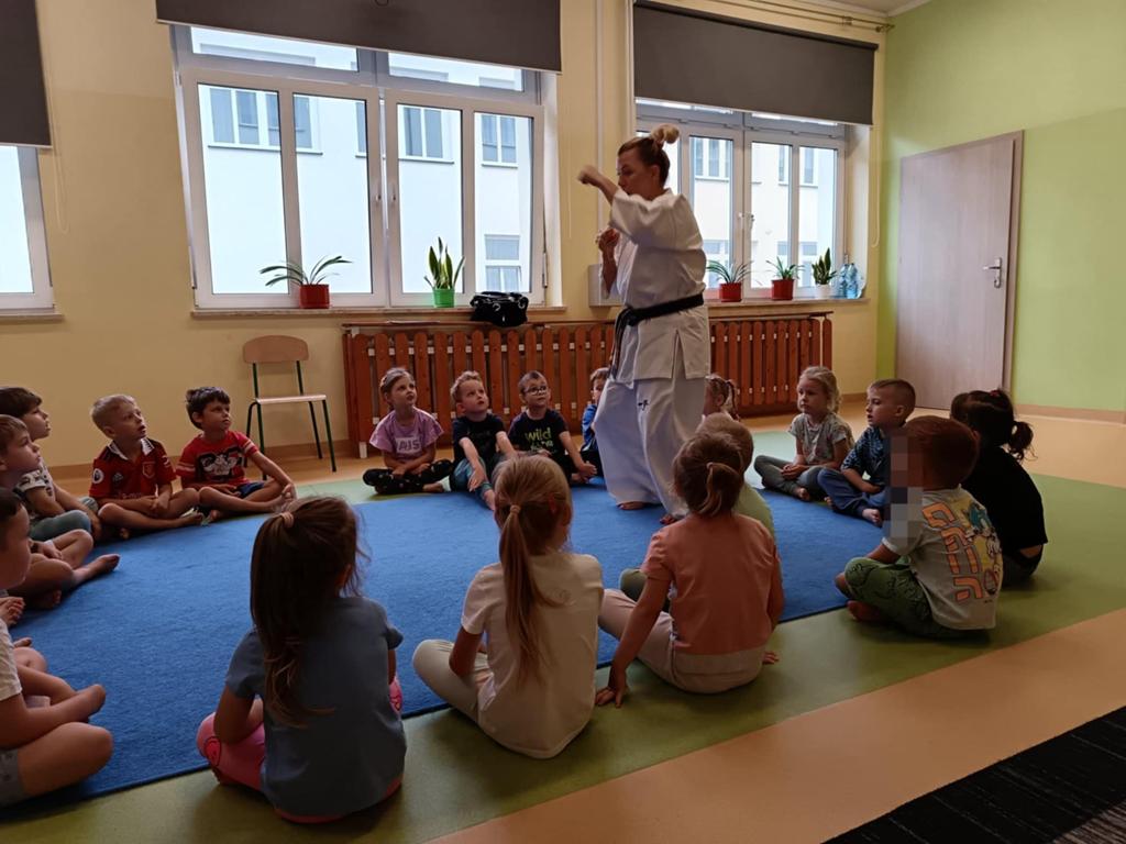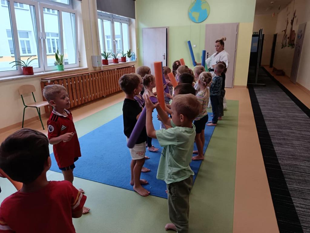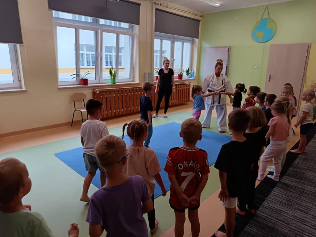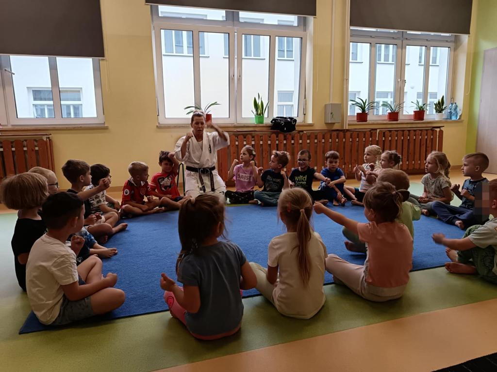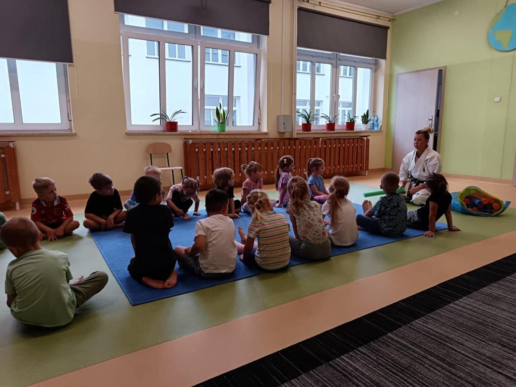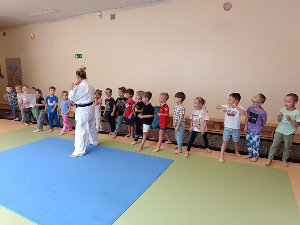 Dnia 11 września 2025 r. dzieci z grupy 5 latków SMERFY wzięły udział w wyjątkowych zajęciach ruchowych – Treningu Karate dla Przedszkolaków. Zajęcia miały formę 45-minutowego treningu dostosowanego do wieku dzieci. Podczas spotkania przedszkolaki uczestniczyły w zabawach i ćwiczeniach rozwijających sprawność, koncentrację i współpracę, poznały elementy karate uczące szacunku i samodyscypliny, a także z radością wzięły udział we wspólnym „kiai!”. Wydarzenie odbyło się w ramach akcji charytatywnej – cały dochód z licytacji został przeznaczony na leczenie Tymka Kalaty.
