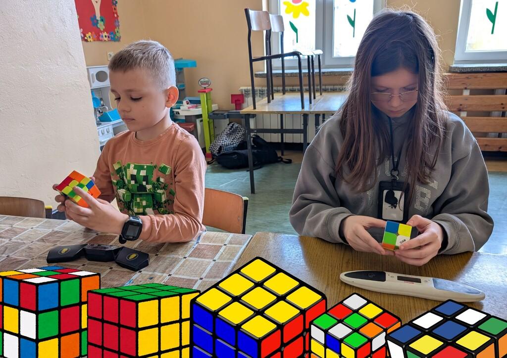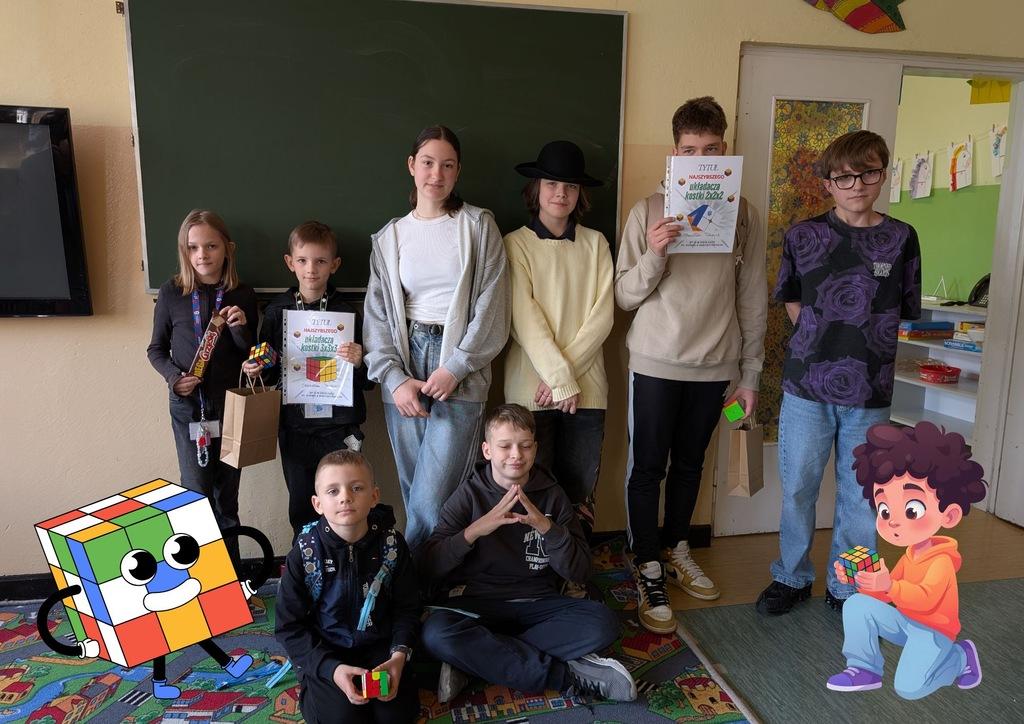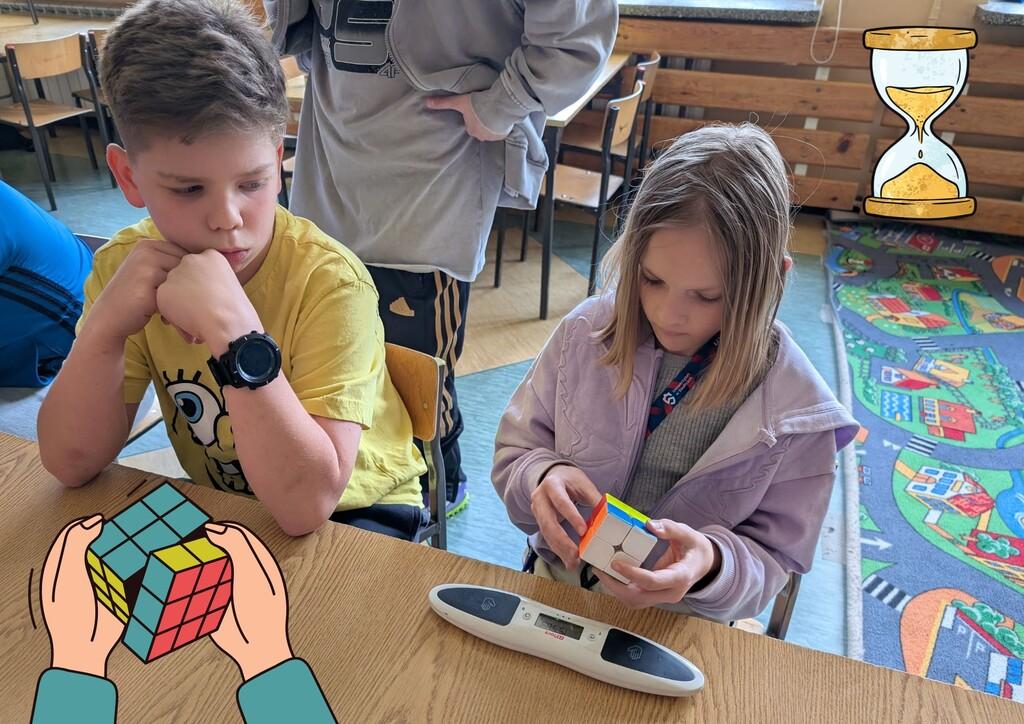 Konkurs z okazji Dnia Kostki Rubika zgromadził uczniów klas I–VIII oraz nauczycieli, którzy zmierzyli się w układaniu kostek 3x3x3 oraz 2x2x2. Uczestnicy rywalizowali o jak najlepszy czas, wykazując się sprytem, koncentracją i znajomością algorytmów