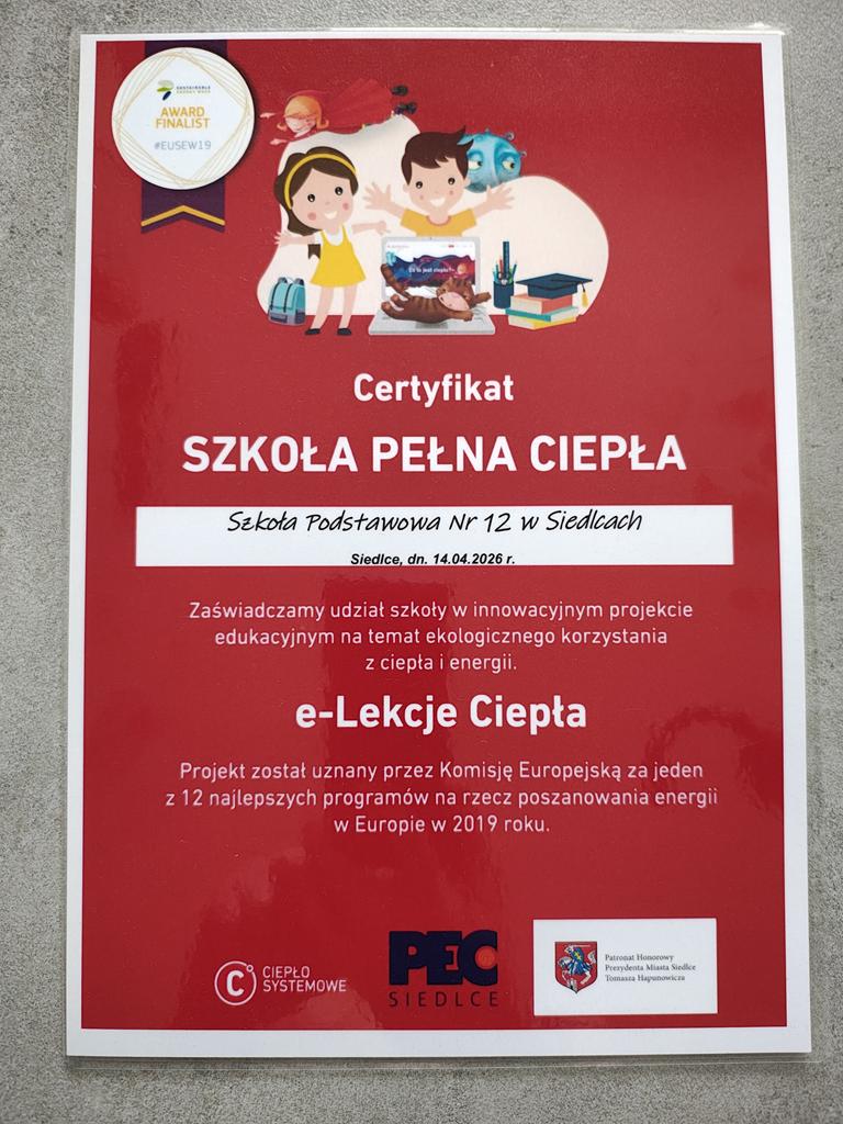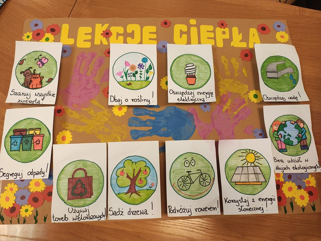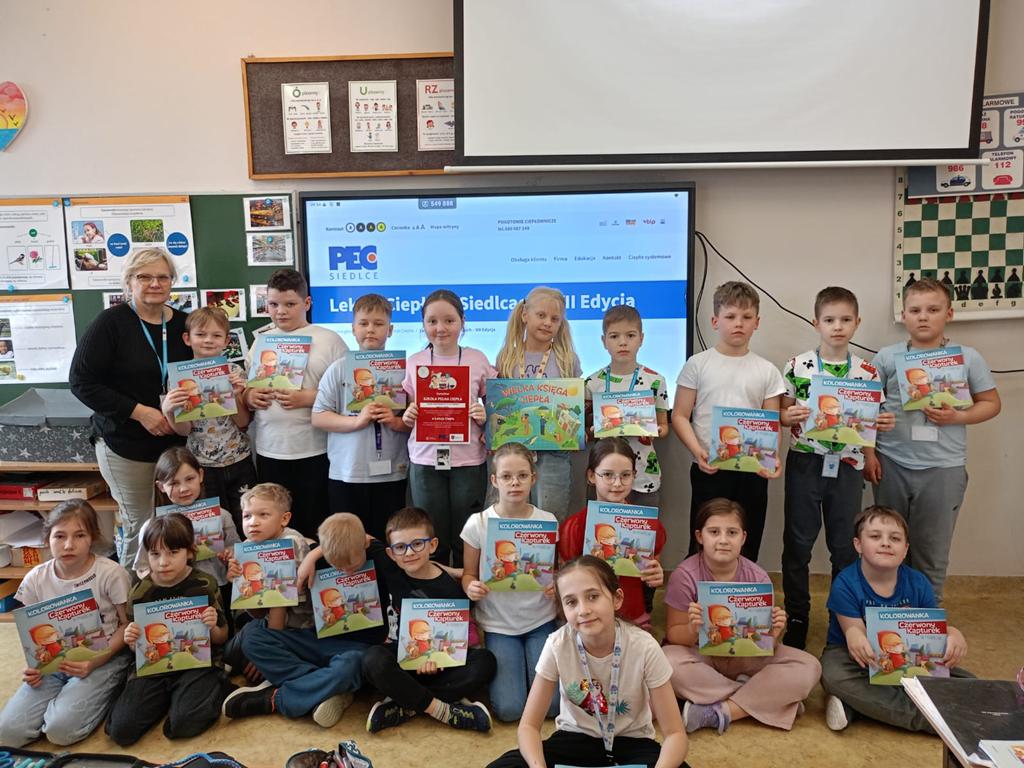 Uczniowie klas 2a, 2c i 3a wraz ze swoimi wychowawczyniami wzięli udział w programie edukacyjno-ekologicznym VIII edycji „Lekcje Ciepła w Siedlcach”, organizowanym przez Przedsiębiorstwo Energetyczne w Siedlcach pod Patronatem Honorowym Prezydenta Miasta Siedlce Tomasza Hapunowicza. Projekt ten miał na celu przybliżenie dzieciom wiedzy na temat ciepła systemowego, jego powstawania oraz oszczędzania. Rozwijał wiedzę na temat odpowiedzialności za świat, w którym żyjemy i uczył racjonalnego korzystania z energii cieplnej. Dzieci w ciekawy i twórczy sposób utrwaliły wiedzę zdobytą podczas „Lekcji ciepła”, nauczyły się, jak codziennie oszczędzać ciepło oraz tego, że każdy z nas może mieć wpływ na ochronę środowiska. Wszystkie klasy przygotowały również pracę konkursową, w której uczniowie mogli wykazać się pomysłowością, kreatywnością i wiedzą zdobytą podczas zajęć.