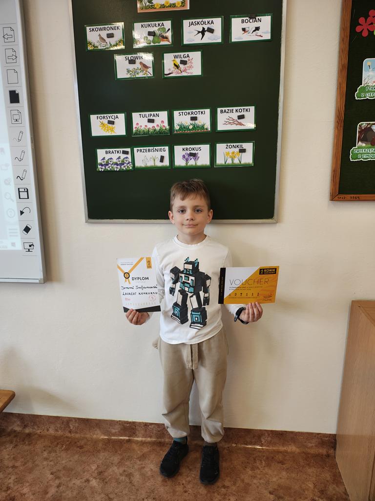 Wynik – 82 pkt. oraz tytuł laureata w kategorii Pionek otrzymał Jeremi Trojanowski z klasy 3b.